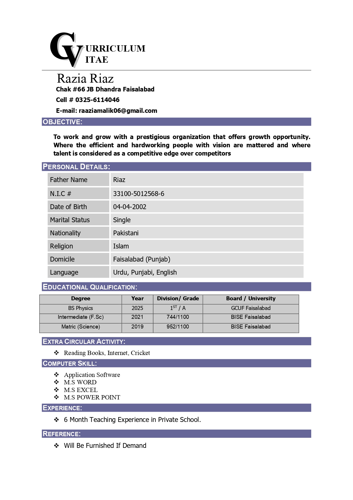 - Qualifications Details