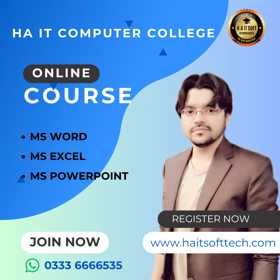 I completed the Microsoft Office + Freelancing course at H.A IT Computer College, and it was a great learning experience. Sir Hafiz Muhammad Atif Arshad explained everything in a very easy and friendly way. I learned how to use MS Word, Excel, and PowerPoint for professional work. Every class was practical and helpful.